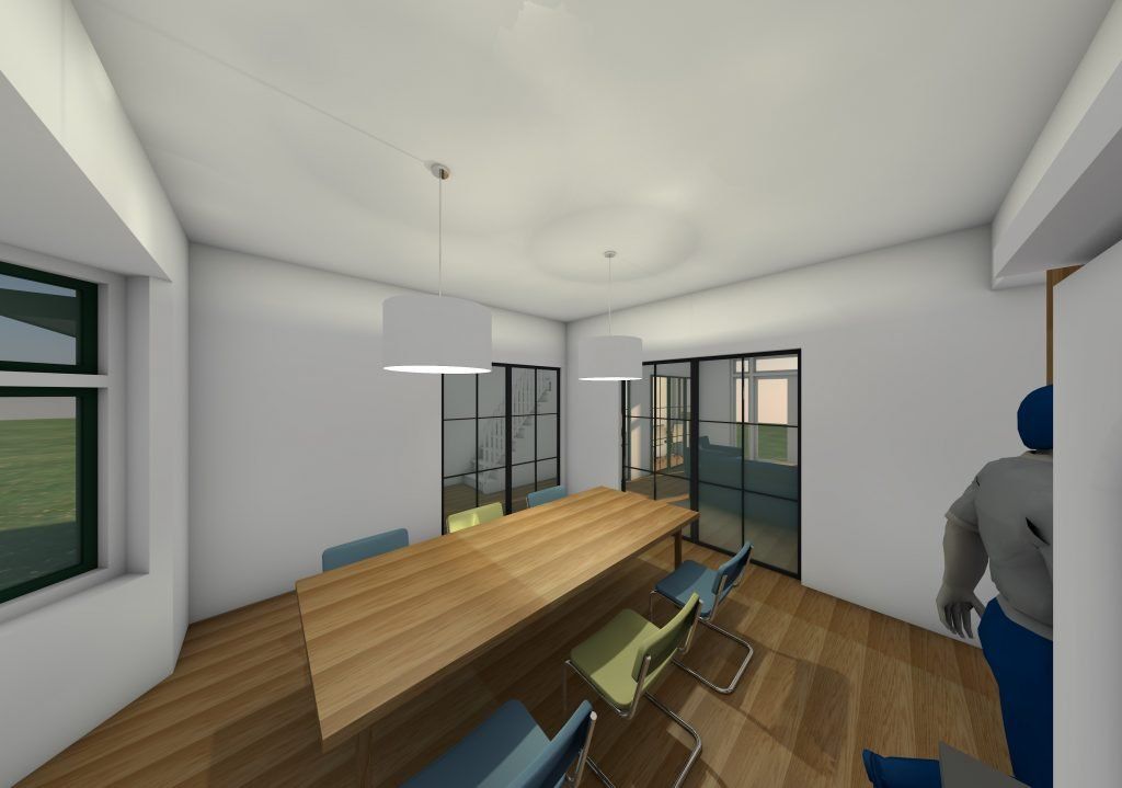Een dakkapel boven het trappenhuis, een dakkapel aan de andere kant van de woning, een uitbreiding van de begane grond aan de zijkant van de woning, nieuwe stalen puien in het interieur met als doel alle ruimten visueel met elkaar te verbinden. Dat was de totale opdracht. Het resultaat is een zeer ruimtelijk huis. Er zijn ook veel plekken om te verblijven.